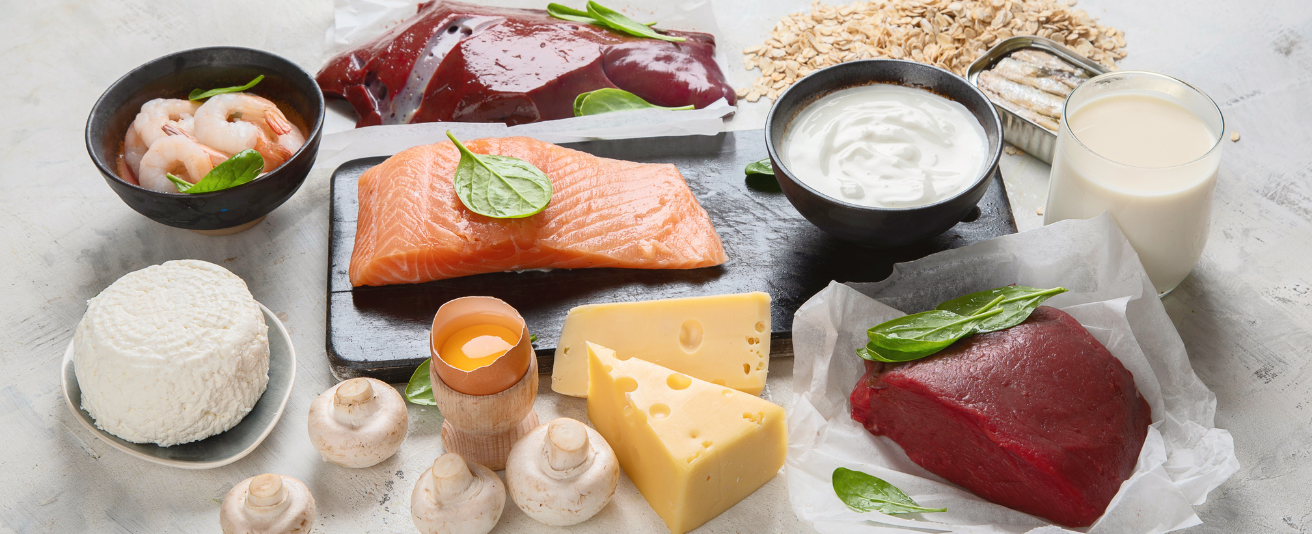 As principais fontes alimentares de vitamina B12 são as carnes, ovos, leite e derivados do leite1.